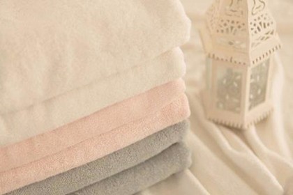 浴巾以纯棉纱线为原料,分有纱织浴巾和线织浴巾两类,毛圈高度和密度比面巾、枕巾高而密,吸水储水性和保暖性。