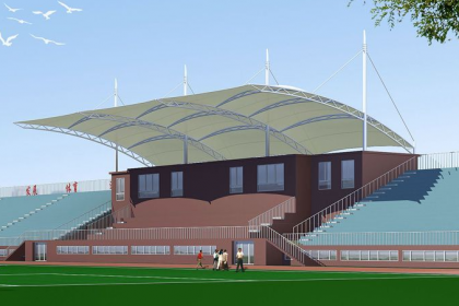 钢膜结构停车棚支持高度定制化设计。用户可根据需求选择膜材颜色(如白色、灰色、蓝色等)、透光率及钢结构表面处理工艺(如氟碳喷涂、热镀锌),甚至集成照明、充电桩等附加功能。其模块化设计也便于后期扩展,例如在原有车棚基础上增加单元模块,快速提升停放容量。由于膜材自重轻(约1-2kg/㎡),对地基承载力要求较低,旧场地改造时无需大规模开挖基础,降低施工成本与周期。